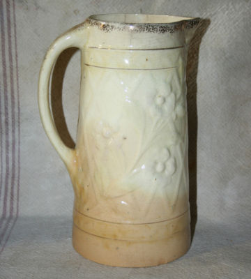 Title (ebay affiliate link): Antique Yellowware Floral Lattice Relief Pitcher Old Vintage Crazing Primitive