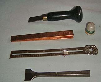 Sewing Lot - 2 Buttonhole Cutters, 2 Hemmers, & 1 Adv. Thimble 19th & 20thC