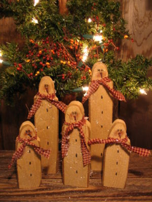 Title (ebay affiliate link): 5 Primitive ~ SNOWMEN FAMILY ~ Tuck Blocks Shelf Sitters Christmas OOAK