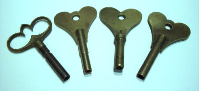 LOT OF 4 ANTIQUE HIGH GRADE BRASS CLOCK KEYS