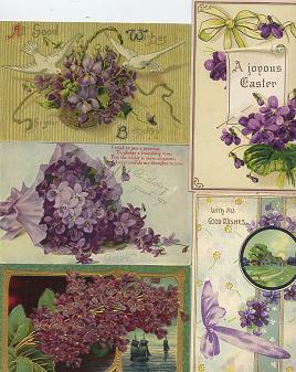 Title (ebay affiliate link): 26 DIFFERENT POSTCARDS FEATURING VIOLETS; BIRTHDAY AND EASTER; 100 YEARS OLD