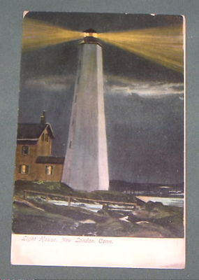 Title (ebay affiliate link): NEW LONDON, Connecticut -- LIGHTHOUSE -- Night view -- circa 1905 postcard