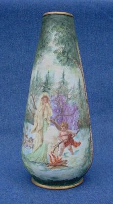 Title (ebay affiliate link): Gebruder Heubach Lichte Tapestry Pottery Vase Lady In Forest Cherubs 9" Exc!
