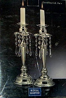 PAIR GLASS CANDLESTICKS~CANDLE STICKS WITH GLASS PRISMS~NEW IN BOX