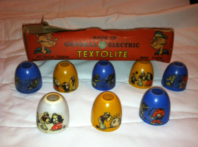 Title (ebay affiliate link): RARE POPEYE CHEERS GENERAL ELECTRIC TEXTOLITE TREE LIGHT COVERS NO CRACKS COMIC