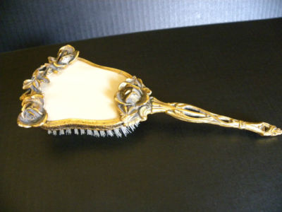 Title (ebay affiliate link): Antique Victorian Style Hairbrush Ornate Gold Metal Rose Design 11"