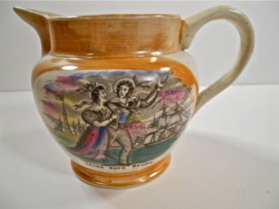 Title (ebay affiliate link): SUPERB EARLY 19TH C. SUNDERLAND LUSTRE PITCHER JACKS SAFE RETURN SHIPS BRIDGE
