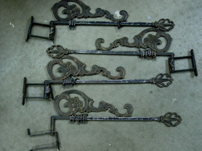 4 Antique Metal Curtain Rods w/Mounting Holders