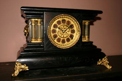 ANTIQUE GILBERT BLACK MANTLE CLOCK