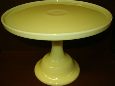 VASELINE URANIUM GLASS CAKE STAND PLATE PEDESTAL SERVING PLATTER YELLOW MILK ART