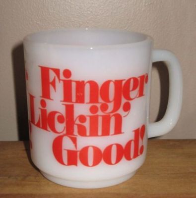 Title (ebay affiliate link): FINGER LICKIN GOOD Mug ~ KFC Kentucky Fried Chicken ~ Milk Glass Colonel Sanders