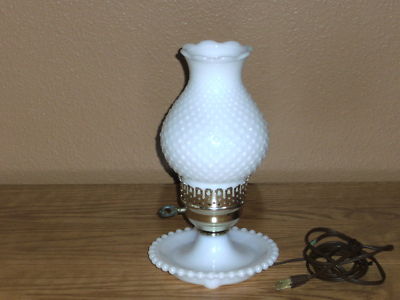 Title (ebay affiliate link): Vintage Hobnail Electric Hurricane White Milk Glass Table Lamp
