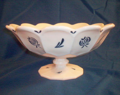 White Milk Glass Pedestal Fruit Serving Bowl Blue Onion Hand Painted? Design