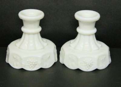WESTMORELAND MILK GLASS PANELED GRAPE PAIR OF CANDLE