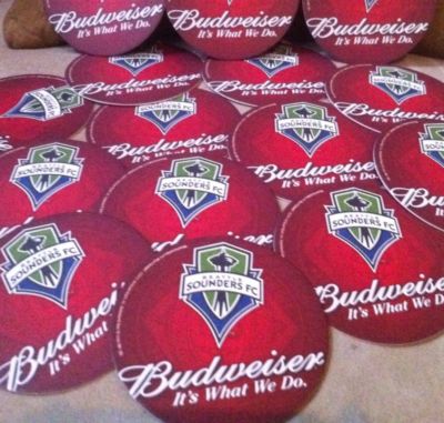 Title (ebay affiliate link): 20 BUDWEISER Seattle Sounders FC Soccer Beer Coasters / Mat "It's What We Do"