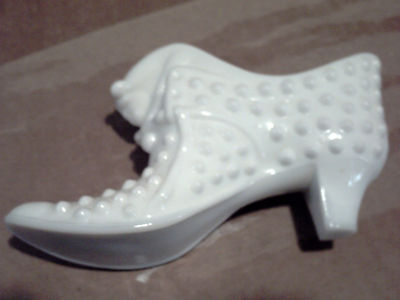 Fenton Shoe - White Milk Glass Hobnail w/ Cat