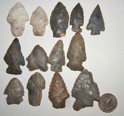 13 Old grey flint spear point arrowhead Indian relics Indiana found artifact NR