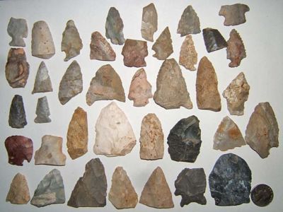 Title (ebay affiliate link): 38 Old spear point arrowheads Indian relics Indiana found artifact NR lot