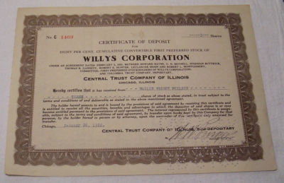 Title (ebay affiliate link): VINTAGE 1922 WILLYS OVERLAND JEEP STOCK CERTIFICATE