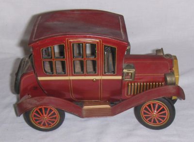 Title (ebay affiliate link): VTG CRAGSTAN "Y" TIN METAL TOY CAR JAPAN BATTERY OPERATED MAROON MODEL T FORD