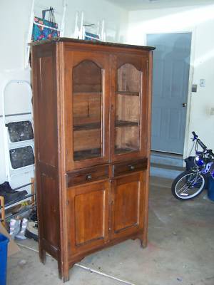 Primative Early American Oak china Cabinet