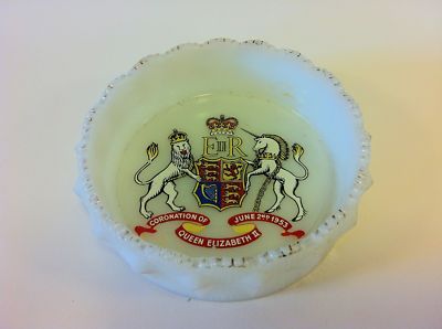Title (ebay affiliate link): MILK GLASS 1953 QUEEN ELIZABETH II COMMERATIVE CORONATION ASHTRAY - ROYALTY