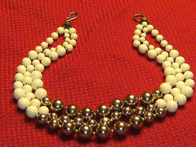 VINTAGE MILK GLASS SILVER BEAD NECKLACE