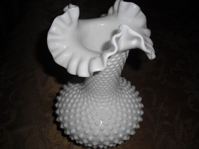 Large Vintage Milk Glass Ruffled Hobnail Vase - Fenton?