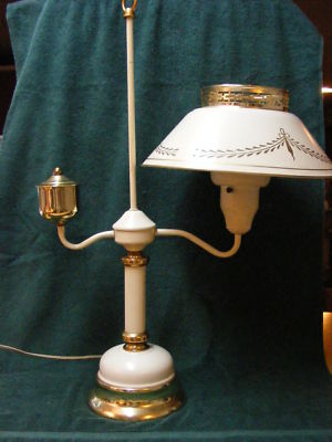 Vintage Toleware Metal Student Lamp w/milk glass shade