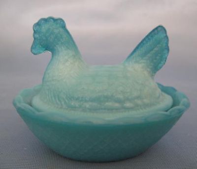 Title (ebay affiliate link): MINI HEN on the NEST OPEN SALT / DIP AQUA BLUE MILK GLASS CHICKEN