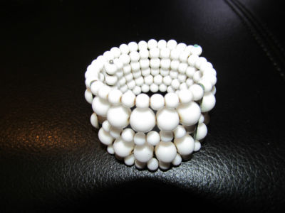 Vintage Deco Milk Glass Cuff Beaded Bracelet estate jewelry art glass beads