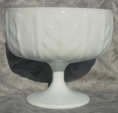 Title (ebay affiliate link): OAK LEAF White MILK GLASS Compote Pedestal Vase Bowl Dish Vintage FTD 1975