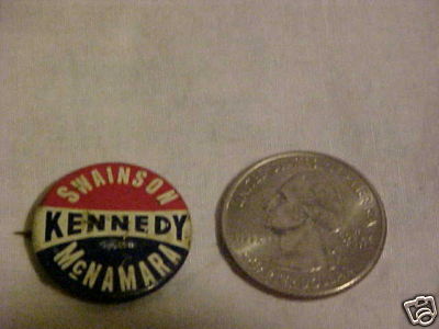 Title (ebay affiliate link): 1960 John F. Kennedy Democratic Presidential Candidate pin w/Swainson/ McNamara