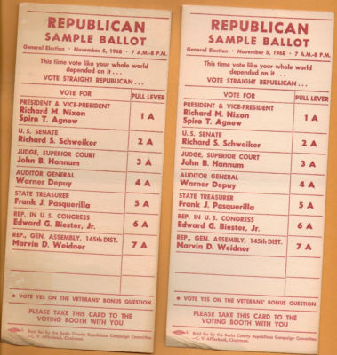 Title (ebay affiliate link): REPUBLICAN SAMPLE BALLOT GENERAL ELECTION NOVEMBER 5,1968 RICHARD M. NIXON