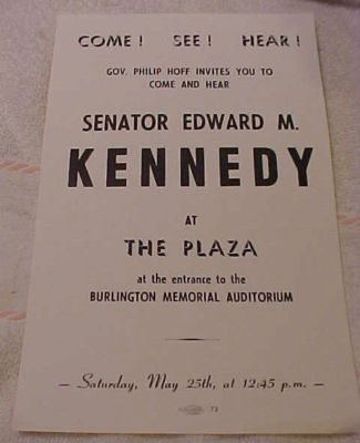 Title (ebay affiliate link): 1973 VERMONT FLYER SENATOR EDWARD M. KENNEDY SPEAKS AT BURLINGTON , VERMONT