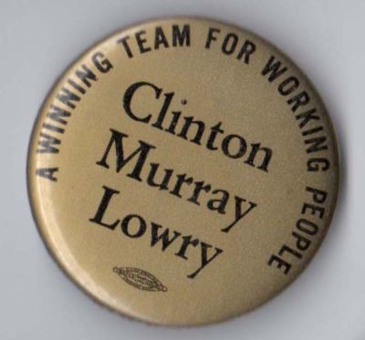 Bill Clinton campaign button pin 1992 Washington coattail Murray Lowry