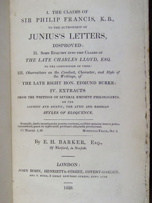 Title (ebay affiliate link): 1828 Barker CLAIMS OF SIR P FRANCIS re JUNIUS LETTERS