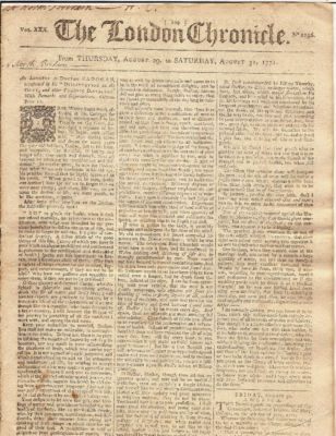 Title (ebay affiliate link): 1771 London Newspaper- Early Cricket Match -Saffron Walden vs. Stanstead Abbotts