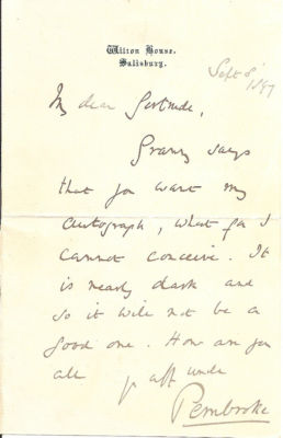 1897 Original Note - Lord Pembroke, Wilton House, Salisbury