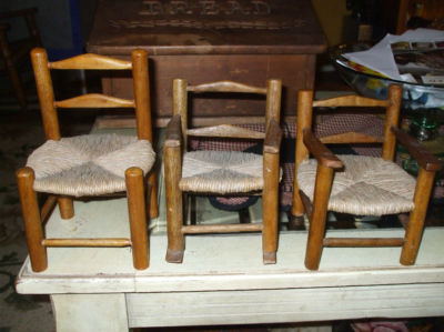 SET OF THREE PRIMITIVE DOLL CHAIRS