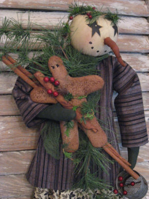 Title (ebay affiliate link): Original Primitive Christmas Snowlady/Snowman Doll holding gingerbreadman!