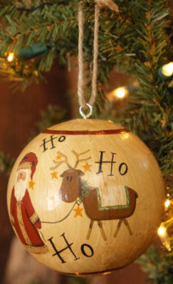 Title (ebay affiliate link): PRIMITIVE/COUNTRY~CHRISTMAS BALL ORNAMENT W/JUTE HANGER~SANTA/REINDEER~NEW~