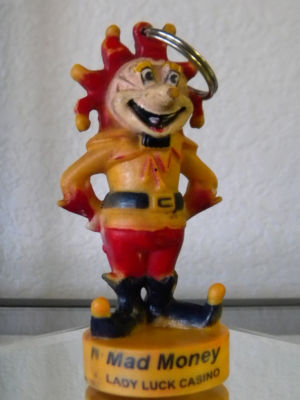VINTAGE LADY LUCK CASINO MAD MONEY JESTER KEYCHAIN