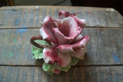 Title (ebay affiliate link): VTG CAPODIMONTE PORCELAIN ROSE CANDLE HOLDER OLD MARKS