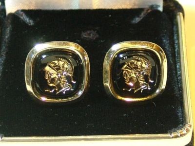 Anson Goldtone Roman Soldier With Black Inlay Vintage Antique Cufflinks