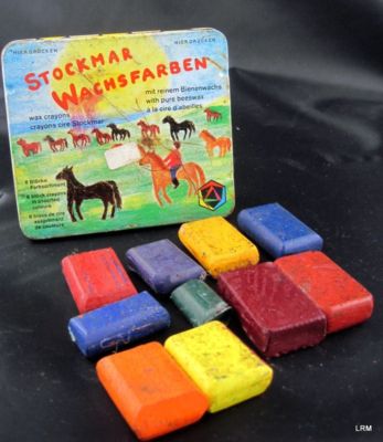 Title (ebay affiliate link): Vintage Stockmar Wachsfarben Pure BeesWax Crayons in Metal Tin - W. Germany