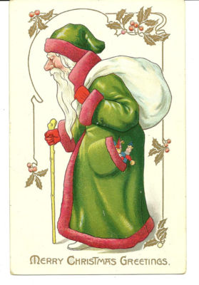 1 Card Lot, Christmas Santa by Tuck, Green Robe, Very Tired!!