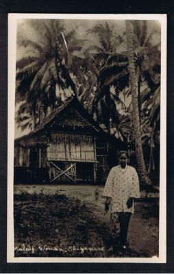 Title (ebay affiliate link): Early Real Photo Ethnic Postcard Malay Woman & House Singapore Malaysia