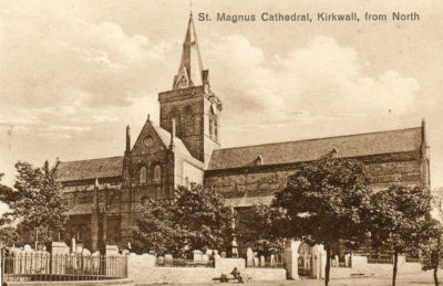 Title (ebay affiliate link): "KIRKWALL" View of St Magnus Cathedral from the North ( See Scan )