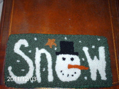 Title (ebay affiliate link): HANDMADE PRIMITIVE FOLK ART WOOL HOOKED "SNOW" SNOWMAN RUG~PRIM